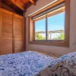 Von einer Terrasse aus kann man einen Ausblick auf die Berge genießen. Diese Villa verfügt über ein Badezimmer mit einer Dusche. Ein Haartrockner und Handtücher gehören ebenfalls zur Ausstattung des Badezimmers.